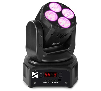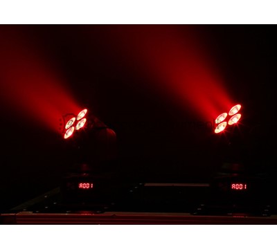 Light source: 4-in-1 LED LED colours: Red, Green, Blue, White LED power: 9W Quantity of LEDs: 4 Beam angle: 26 Field angle: 44 Illuminance: 2.320 lx @ 1m Head movement: Pan 540 Head movement: Tilt 180 Flash rate per second: 0 - 20Hz Modes: Automatic programs, DMX DMX channels: 14, 16 DMX connector: 3-pin XLR Power plug: IEC Power consumption: 85W Power supply: 100-240VAC 50/60Hz Dimensions (L x W x H): 145 x 140 x 180mm Dimensions: Flightcase 300 x 150 x 210mm Weight: 4,10 Weight: Each 1.65