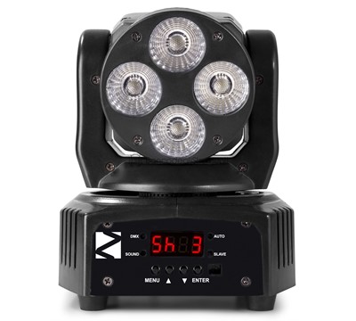 4 LED 4 in 1 da 9 W ad alta potenza Miscelazione dei colori RGBW Diversi colori preimpostati 4 spettacoli preprogrammati Dimmer elettronico: 0 - 100% 14 o 16 canali DMX Modalità DMX e stand-alone Sincronizzazione master/slave Suono attivato con sensibilità regolabile Modalità automatica con velocità regolabile Pan/tilt indietro Funzione di ripristino Display a LED e pannello di controllo Ingressi/uscite DMX tramite XLR a 3 pin Ingresso connettore IEC