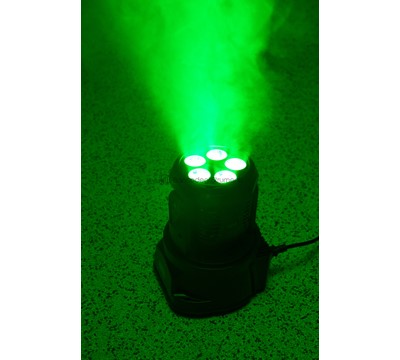 Light source: 6-in-1 LED LED colours: Red, Green, Blue, Amber, White, Ultra Violet LED power: 18W Quantity of LEDs: 5 Beam angle: 22 Field angle: 42 Illuminance: 3.440 lx @ 1m Head movement: Pan 540 Head movement: Tilt 180 Modes: Automatic programs, DMX DMX channels: 11, 15 DMX connector: 3-pin XLR Power plug: IEC Power consumption: 60W Power supply: 100-240VAC 50/60Hz Dimensions (L x W x H): 175 x 175 x 245mm Weight: 3,30