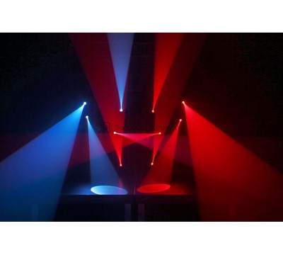 LED 4 in 1 da 10 W Miscelazione dei colori RGBW Modalità DMX e stand-alone 4 o 7 canali DMX Lenti speciali per creare un fascio stretto Spettacoli pre-programmati Ingresso/uscita DMX tramite XLR a 3 pin Inclusa staffa di montaggio