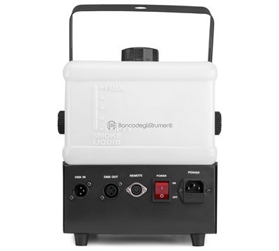 Macchina da fumo 1800W con LED 3 in 1 Serbatoio illuminato a led Produce una colonna di fumo illuminata Telecomando LCD con funzione timer Controllo del colore dei LED rosso, verde, blu o bianco tramite DMX o stand alone Display digitale per impostare facilmente le funzioni DMX e le impostazioni autonome Serbatoio liquido per fumo 3500ml Telecomando cablato, lunghezza cavo 3m
