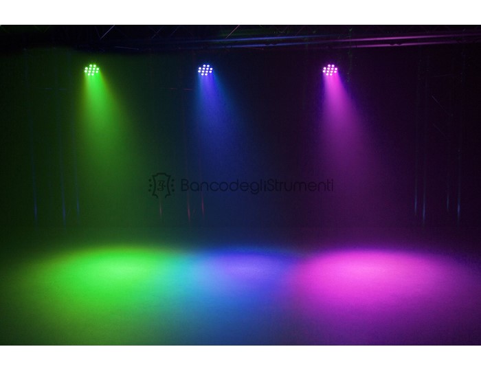 SlimPar35  12 x 3W 3in1 RGB DMX: Slim-Par 35 è un potente effetto dotato di 12 LED luminosi RGB da 3W.