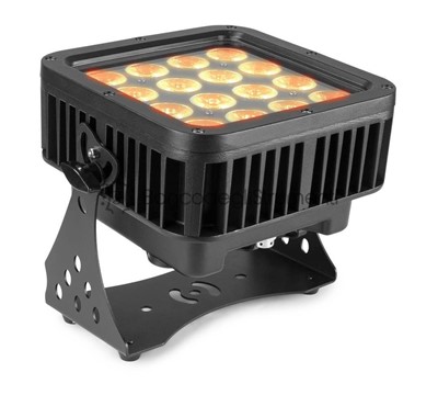 Luce architetturale compatta Per architettura o spettacoli liveRobusto alloggiamento in alluminio 16x 8W 4-in-1 LEDs Mix di Colori RGBW Rating IP65: utilizzo interno ed esterno Canali DMX: 4/8/10 Show pre programmati Raffreddamento a convezione 16-bit PWM dimming Colore: Nero Pannello di controllo con Display LED Connettori Stagni, DMX e Power Connector TR (in/out)