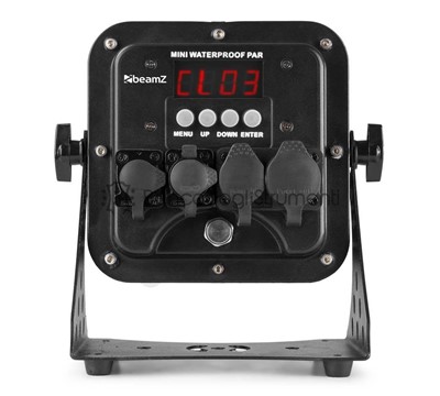 Light source: 4-in-1 LED LED colours: Red, Green, Blue, White LED power: 8 Quantity of LEDs: 16 Beam angle: 19 Field angle: 40 Illuminance: 17902 lx @ 1m Flash rate per second: 1 - 24Hz DMX channels: 4, 8, 10 DMX connector: 3-pin XLR Modes: Automatic programs, DMX IP rating: IP65 Cooling: Convection Display: LED Power Plug: Power-connector TR Power consumption: 1.97 - 0.92A Power supply: 100-240VAC 50/60Hz Dimensions (L x W x H): 230 x 240 x 120 mm Weight: 3,40 Accessories: DMX cable, Mounting bracket, Power cable