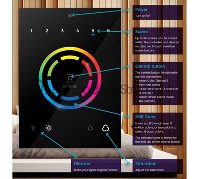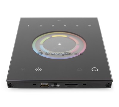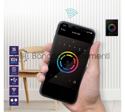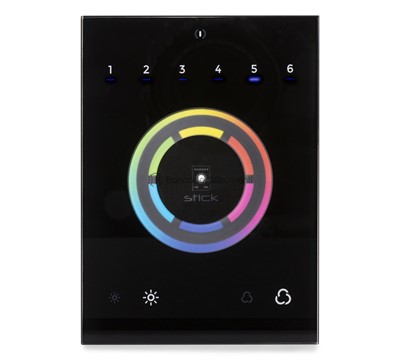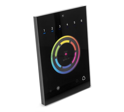 STICK-CW4 WiFi DMX Interface wallmo: Il controller di illuminazione programmabile STICK-CW4, per l'illuminazione RGB e RGBW, è stato progettato attorno a una ruota dei colori sensibile al tocco.