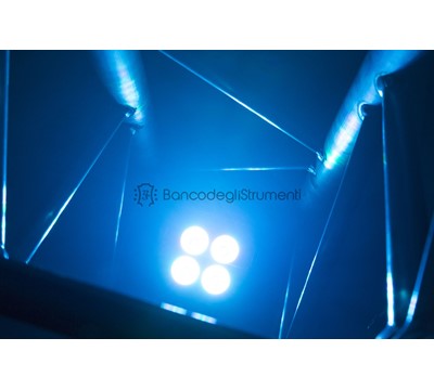 4 LED 4 in 1 da 4 W Miscelazione dei colori RGB-UV 3, 4-1, 4 o 8 canali DMX Modalità DMX e stand-alone Dimmer elettronico 0-100% Il design compatto si adatta facilmente all'interno di TRUSS Funzione Master/Slave Telecomando IR Ingresso/uscita DMX tramite 3 pin Spettacoli preprogrammati Suono attivato con sensibilità regolabile Modalità automatica con velocità regolabile Pannello di controllo con display a LED Ingresso/uscita connettore IEC