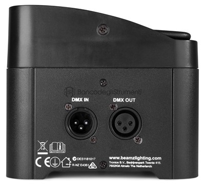 Supplied features: Master/Slave mode Light source: 4-in-1 LED LED colours: Red, Green, Blue, Ultra Violet LED power: 4W Quantity of LEDs: 4 Beam angle: 19 Field angle: 34 Flash rate per second: 0 - 20Hz DMX channels: 3, 4, 8 DMX connector: 3-pin XLR Modes: Automatic programs, DMX Power plug: IEC Power consumption: 30W Power supply: 100-240VAC 50/60Hz Dimensions (L x W x H): 144 x 144 x 121mm Weight: 1,60