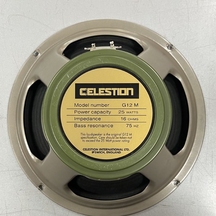 Il Celestion G12M originale degli anni '60 è stato il primo speaker Celestion per chitarra a utilizzare un magnete ceramico ed ha aperto la strada agli amplificatori per chitarra ad alta potenza. Il G12M utilizza un magnete di peso medio per produrre un suono morbido e caldo ma abbastanza brillante da reggere il confronto con qualsiasi backline rock. Noto semplicemente come Greenback, il leggendario "brown-tone" del G12M è caratterizzato da una gamma bassa calda, controllata, una gamma media ricca e una gamma alta delicata e dettagliata.