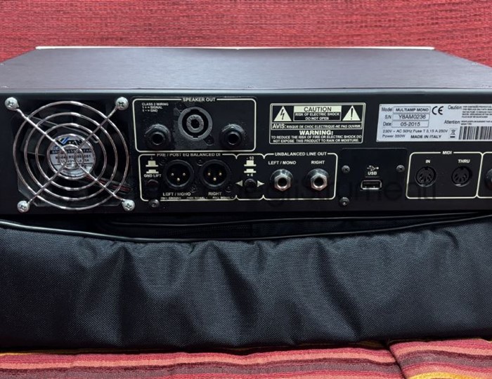 - Power Amp (stato solido): 250W @ 4 Ohm / 150W @ 8 Ohm