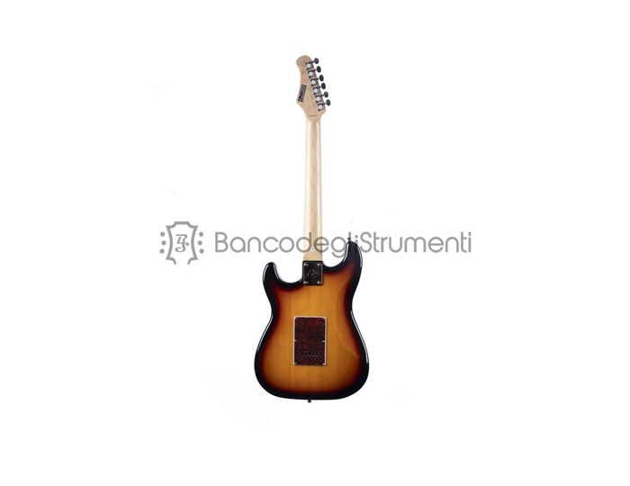 La Eko ST-100 Sunburst è la chitarra elettrica della serie "Tribute 100" di casa Eko Guitars con corpo in pioppo, manico in acero e tastiera in laurel. È equipaggiata con pickup Eko in configurazione S-S-S, controlli di Volume e due Toni, switch blade a 5 vie e ponte con leva tremolo. Presenta un nut da 42mm, lunghezza della scala di 650mm e tastiera da 22 tasti con radius da 14". Ideale per iniziare lo studio della chitarra elettrica con uno strumento performante, confortevole e con un ottimo rapporto prezzo/qualità.