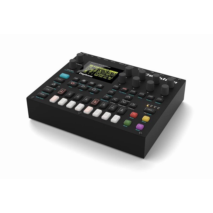 Elektron Digitone: Sintetizzatore digitale ad 8 voci (multitimbriche) con Algoritmi FM multipli e sequencer con 4 tracce synth, 4 tracce MIDI, 1 filtro multi-mode, 1 filtro base/width, 1 overdrive e 2 × LFO assegnabili e 1 arpeggiatore per traccia, sequenze polifoniche, lunghezze individuali delle tracce, blocco dei parametri, trig condition, micro timing, cambio suono per step, effetti di chorus, delay, reverb, master overdrive, supporto Overbridge, 2 ingressi audio con jack da 1/4” sbilanciato, 2 uscite audio con jack da 1/4” bilanciato, uscita cuffie, porta USB 2.0, MIDI In/Out/Thru.