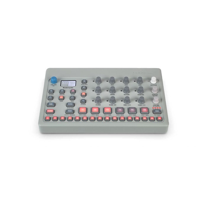 Elektron Model:Cycles Promo: Groove box digitale / sequencer con 6 tracce (utilizzabili anche come tracce MIDI), 6 “machines” disponibili (kick, snare, metal, perc, tone, chord), basate su sintesi FM, send FX con effetti di delay e reverbero, LFO per ciascuna traccia, 6 pad sensibili al tocco, sequencer Elektron con fino a 64 step con lunghezza indipendente per ciascuna traccia, quantizzazione automatica di note e parametri durante la registrazione, parameter lock, trig condition, retrig assegnabile, 96 Project, 96 Pattern per Project, possibilità di memorizzare fino a 60.000 preset, interfaccia audio integrata, uscita cuffie in formato jack da 1/4”, 2 uscite main in formato jack da 1/4”, MIDI In / out / thru su connettori mini-jack TRS, porta (micro) USB 2.0 Hi Speed, 2 slot per il collegamento di Powerhandle BP-1 (battery pack venduto separatamente, disponibile successivamente), display LCD 128 × 64 pixel.