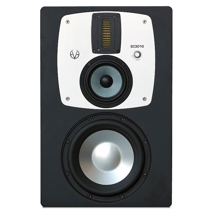 Eve Audio Sc3010: Monitor a tre vie, attivo, per grandi studi di registrazione, mastering, cinema, post-produzione, applicazioni cinematografiche e installazioni a parete, dotato di woofer schermato da 10"" con diaframma metallico a bassa risonanza e doppio rivestimento, midrange da 5” in fibra di vetro, tweeter a nastro con trasduttore Air Motion da 5"", pot posteriore, filtri basati su DSP per la regolazione della risposta in frequenza, push knob per il controllo del volume e della risposta acustica, convertitori A/D Burr-Brown di altissima qualità, interruttore per il livello di ingresso, ingresso analogico XLR bilanciato e RCA sbilanciato, risposta in frequenza 29Hz-21kHz, amplificatori distinti per bassi, medi e acuti con 1x800W + 2x250W (picco), SPL 114 dB, pulsante on/off.