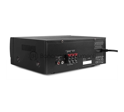 Playback options: BT streaming, SD, USB Output connections: 6.3mm Jack, RCA, USB Speaker connections: Speaker screw terminal Output power: 400W Power supply: 100-240VAC 50/60Hz (15V adapter) Dimensions (L x W x H): 220 x 260 x 95mm Weight: 1,60