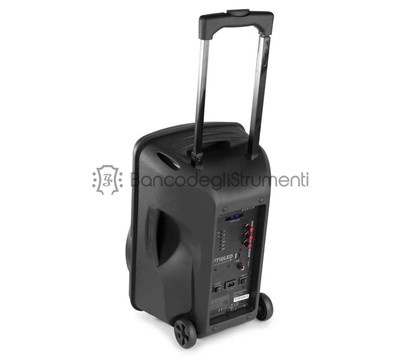 Altoparlante PA portatile Incredibilmente semplice da congurare e usare Utilizzo della tecnologia wireless BT per lo streaming audio Include microfono wireless UHF Lettore multimediale USB integrato, micro-SD / MMC MP3 Ingresso microfono dedicato con effetto echo Talkover commutabile Ingresso Aux aggiuntivo per collegare lettore CD o laptop Woofer illuminato a LED con interruttore On / Off Alimentazione a batteria Carrello integrato con maniglia telescopica