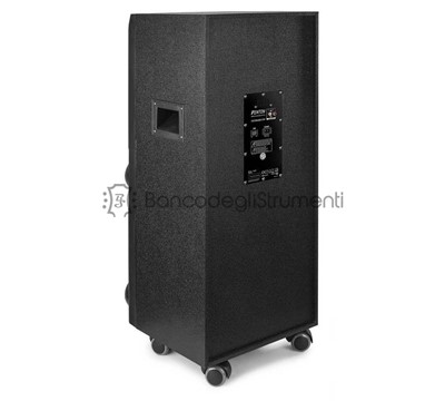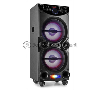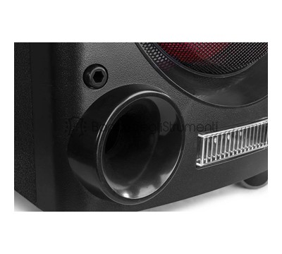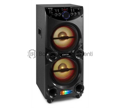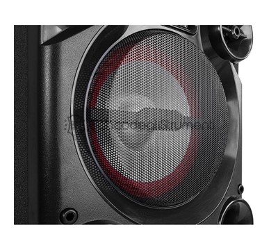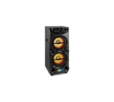 Playback options: BT Streaming, FM-Radio, SD-Card, USB Input Connections: 6.3 mm jack, RCA, SD Card slot, USB Output power: 400W Diameter tweeter: 1.35" Tweeter type: Piezo Amount of tweeters: 2 Diameter woofer: 10" Magnet type: Ferrite Amount of woofers: 2 Frequency Response: 40Hz - 18.000Hz Impedance: 8ohm Power Supply: 220-240VAC 50Hz Dimensions (L x W x H): 350 x 350 x 845mm Weight (kg): 14,60