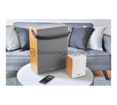 Il sistema è facilmente trasportabile e con la batteria ricaricabile può riprodurre la tua musica preferita ovunque.