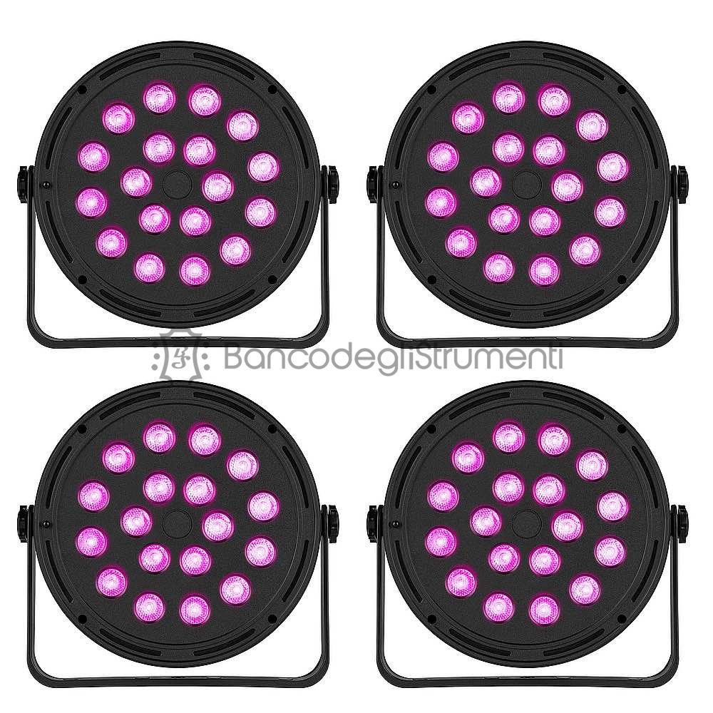 Set di 4 effetti di luce par party 18 LED RGB ad alta potenza Miscelazione colore rosso/verde/blu Programmi di spettacoli di luci automatici Robusto alloggiamento e staffa in ABS Incluso telecomando Colore: nero