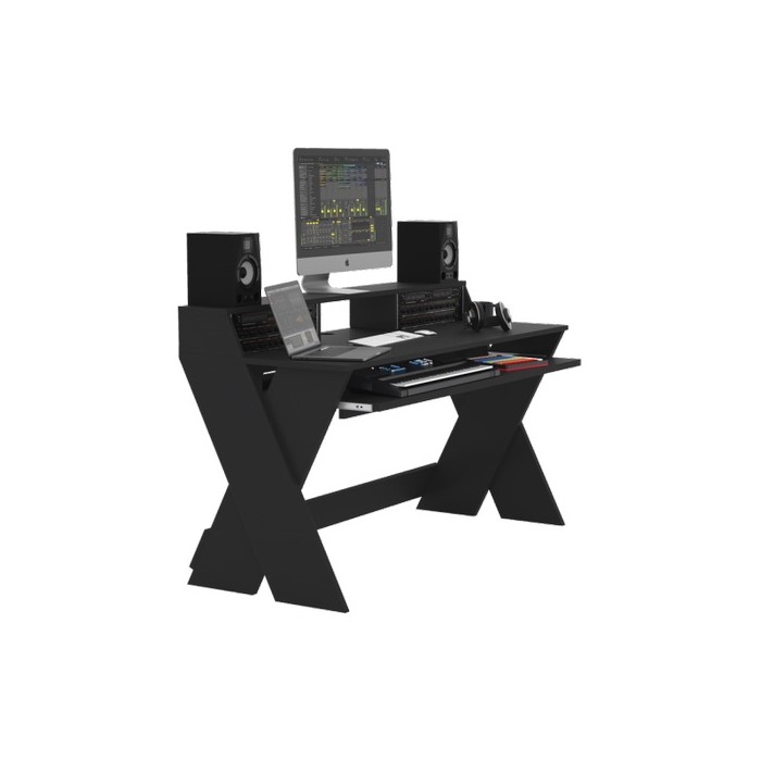 Glorious Sound Desk Pro Black: Console di lavoro professionale con un design ben organizzato, ideale per le workstation di produzione musicale, dotata di piano estraibile per master keyboard, 2 alloggiamenti da 3U rack 19"", spazio per CD/DVD, libri o altro, con foro passacavi, piano di appoggio dimensionato per accogliere tastiera, mouse, mixer, controller o altro, piano rialzato per uno o due monitor video e monitor audio, realizzazione in legno MDF da 20 mm, dimensioni 1550 x 932 x 650 mm, peso 39,7 kg, assemblaggio semplice e senza problemi, colore nero.