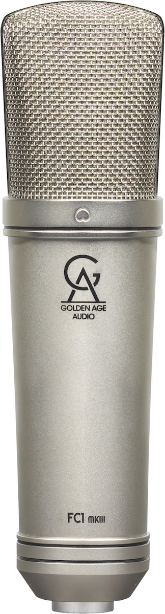 Golden Age Project FC-1 MKIII: Microfono di tipo cardioide a condensatore ideale per registrazioni di ogni tipo, come voci, cori, chitarra elettrica e acustica, batteria e ambienti, dotato di capsula in oro evaporato da 32 mm, risposta in frequenza 20 Hz - 20 kHz, sensibilità 15mV/Pa -36,5 dB (0 dB=1V/Pa 1000 Hz), impedenza 250 Ohm, HPF a 100Hz azionabile meditante interruttore interno, connettore XLR placcato oro, shock mount e astuccio in vinile inclusi.