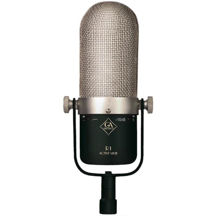 Golden Age Project R1 Active Mkiii Promo: Microfono attivo a nastro in stile vintage, ispirato ai classici RCA 44 e 77 degli anni '70, ideale per registrare voci, strumenti acustici, archi, fiati, suoni orchestrali e cori dotato di nastro largo in alluminio da 50 x 5 mm, diagramma polare figura 8, risposta in frequenza 30 Hz - 18 kHz +/- 3 dB, sensibilità - 40 dB (0 dB=1V/Pa 1000 Hz), impedenza 200 Ohm bilanciati, attenuatore -10 dB, connettore XLR placcato oro, shock mount e case in alluminio.