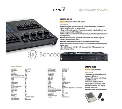 LAMPY 40 2U two universe: Showtec LAMPY 40 2U è una console DMX a 2 universi a 1024 canali completa di funzionalità con un aspetto e una sensazione all'avanguardia, adatta a vari ambienti.