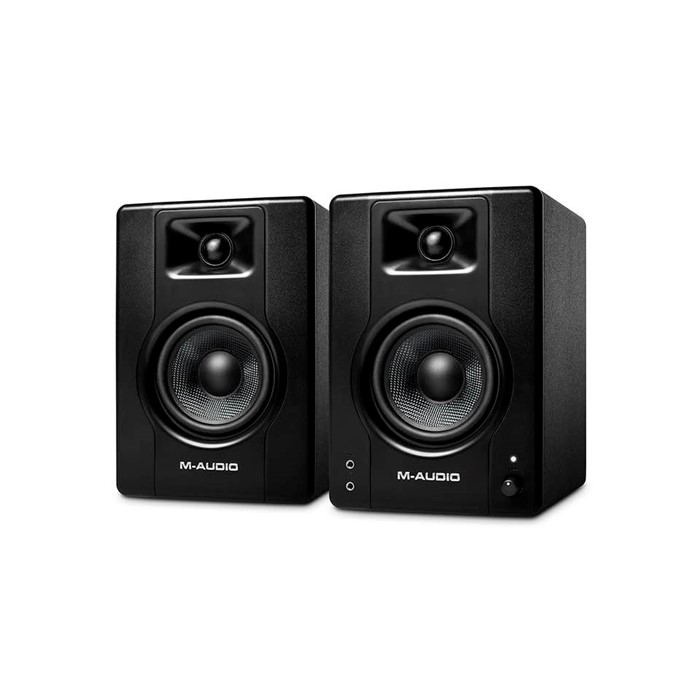 M-Audio Bx4 Promo: Sistema di monitor audio professionali da scrivania, con woofer in kevlar di colore nero da 4,5”, tweeter in seta da 1”, potenza di amplificazione 120 W (50 W RMS), risposta in frequenza 69 Hz – 22 kHz, pot posteriore ottimizzato, controllo del volume frontale, controlli High-EQ e Low-EQ, possibilità di impostare il diffusore attivo come monitor destro o sinistro, ingressi in formato jack da 1⁄4” bilanciati e RCA, ingresso Aux frontale in formato jack da 1/8”.