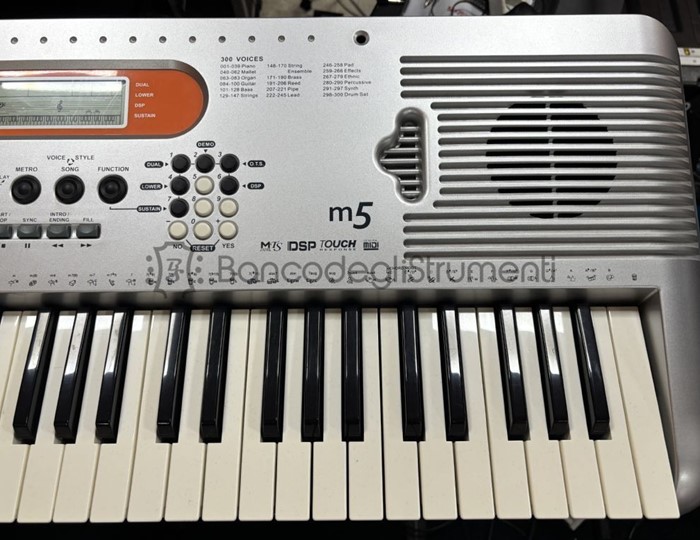 La Medeli M5 è una tastiera 61 tasti dinamica, soluzione ideale per avvicinarsi al mondo della musica. E' equipaggiata con 61 tasti touch response e sistema di apprendimento Music Tutorial System. Con 300 suoni, 100 stili di accompagnamento e 32 note di polifonia, la Medeli M5 è una tastiera completa e versatile. Il funzionamento è a batterie oppure con l'alimentatore.