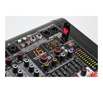 Le caratteristiche includono interruttori mute e solo su ogni canale, lettore USB integrato con display digitale e ricevitore BT per ascoltare musica in streaming al mixer durante la pausa.
