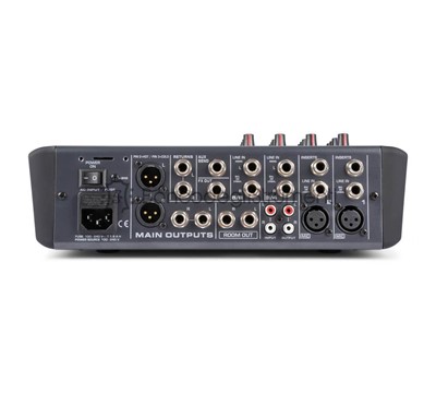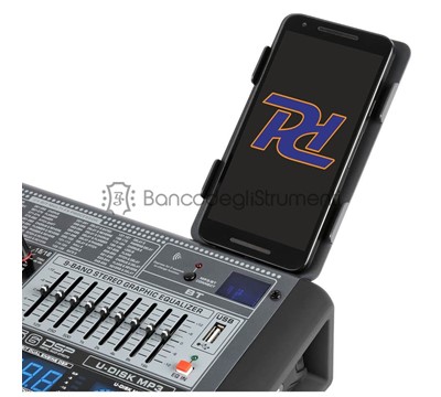 4 ingressi XLR microfonici bilanciati 4 ingressi di linea bilanciati per Jack da 6.3 mm (mono) 1 ingresso di linea stereo bilanciato per 2x jack da 6.3 mm Alimentazione phantom +48V Ingresso di linea stereo (RCA) Filtro low cut da 75Hz sui canali 1-2 Processore multi-FX con 256 preset Interruttore Solo per ogni canale (PFL) Interrutore On/off per ogni canale Controlli Hi, Mid e Low per ogni canale FX, Pan, Trim regolabili per ogni canale Mandate ausiliarie per ogni canale Equalizzatore a 9 bande Uscite principali stereo bilanciate (XLR + jack da 6.3 mm) Sala di controllo separata, uscite cuffie e stereo rec Lettore USB integrato con display digitale Ricevitore BT per streaming audio VU meter LED e Peak LED Portatelefono incluso