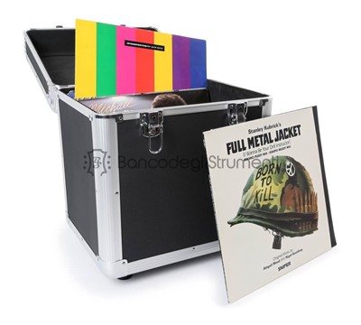 Finitura nera Foderato in gommapiuma 2 chiusure bloccabili Impugnatura morbida Contiene dischi in vinile / LP da 12" Piedini di gomma Impilabile Coperchio completamente removibile