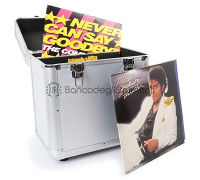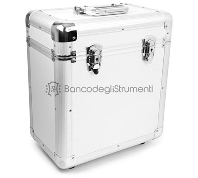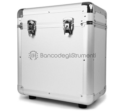 Finitura argento Foderato in gommapiuma 2 chiusure bloccabili Impugnatura morbida Contiene dischi in vinile / LP da 12" Piedini in gomma Impilabile Coperchio completamente rimovibile