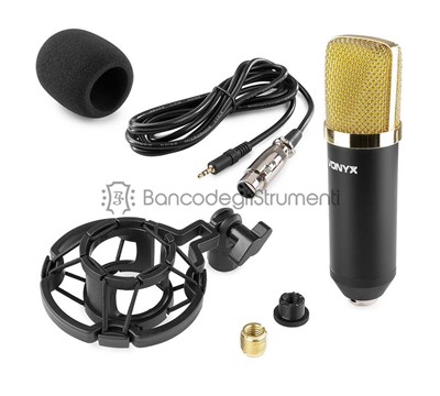 Il microfono a condensatore è rifinito con un'attraente custodia nera / oro.
