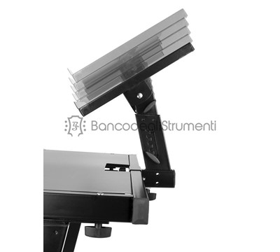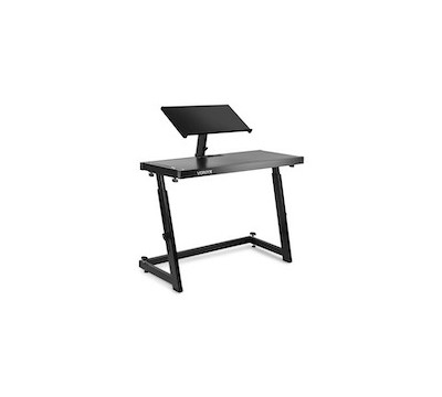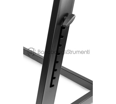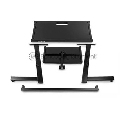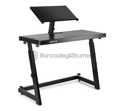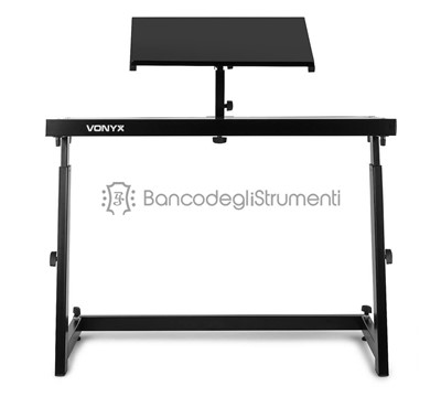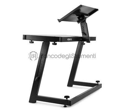 Il supporto mobile per DJ è dotato di bellissime finiture nere ed è completamente regolabile in altezza.