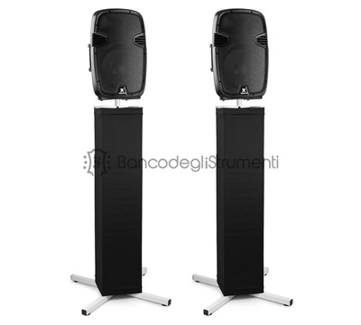 Supporto da podio regolabile in altezza Fornito per coppia di 2 supporti in una borsa per il trasporto Meccanismo di regolazione dell'altezza unico Massima stabilità grazie al piede robusto Completamente regolabile da 100 cm a 180 cm Include 2 tele in lycra (bianco e nero) Include 35 mm Ø adattatore per altoparlante da palo Maniglia di trasporto integrata nella piastra superiore Estremamente leggero e facile da trasportare Facile da installare e smontare Max. carico 30 kg