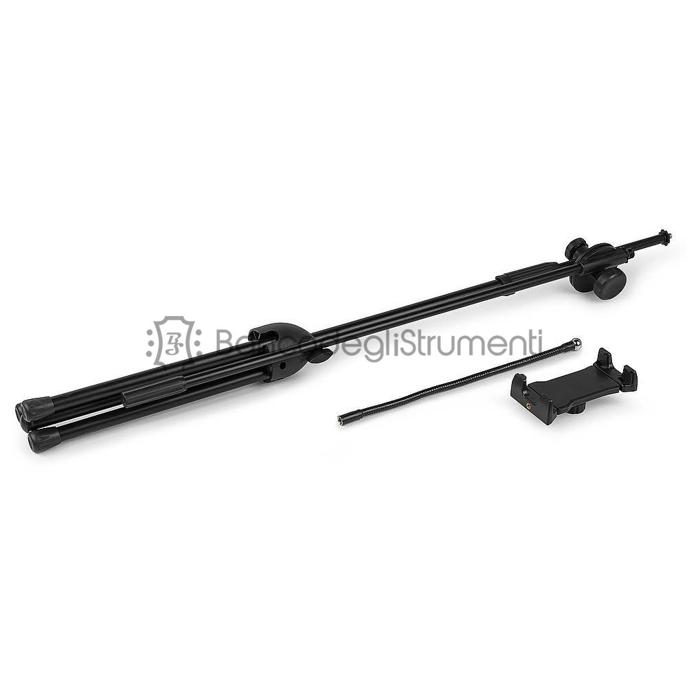 Sono inclusi una clip per microfono, un braccio regolabile e un supporto per tablet con collo d'oca girevole a 360 gradi.