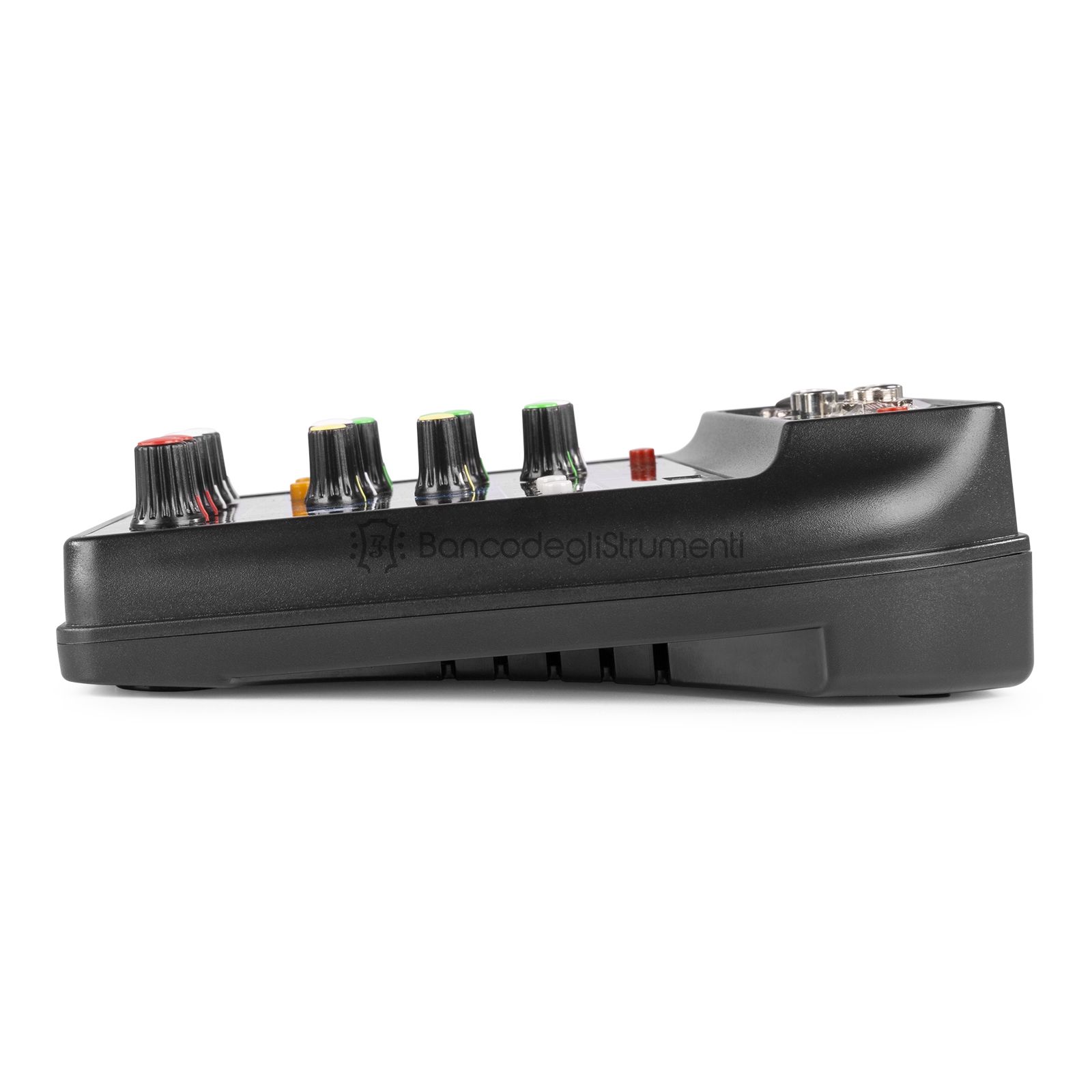 L'alimentazione phantom di +48V รจ commutabile agli ingressi XLR per microfoni a condensatore.