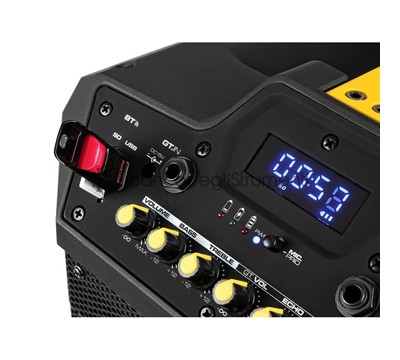 Dispone di porte USB e SD, un ricevitore per collegare lo smartphone via BT, ingressi AUX per collegare qualsiasi lettore, per non parlare dell'ingresso per collegare una chitarra.