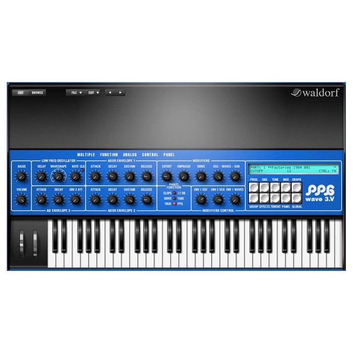 Waldorf Ppg Wave 3.V: Sintetizzatore software reincarnazione del leggendario PPG Wave, uno dei più popolari sintetizzatori di fascia alta degli anni 80, disponibile come plug-in VST/AU per una facile integrazione con i software DAW più diffusi, caratterizzato da un'accurata riproduzione delle forme digitali e dei filtri analogici che hanno determinato l'ineguagliabile carattere sonoro dello strumento.
